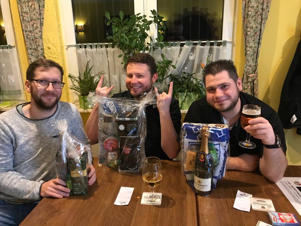 SIEGEREHRUNG: AMOSER und MFLACH nehmen die Preisvergabe gegen 23:50 Uhr vor. Besonders in Wallung dürften die Jungs verfallen, die die je zwei VIP-Karten zum Match Hannover 96 gegen Bayer Leverkusen (KKONRAD1989 und MHAEBERER) und des SCM gegen (PPOSCHWALD und MFLACH) erhaschen konnten. Auch die beiden FCM-Karten musste nicht lange auf die Entnahme vom Preistisch warten. Weitere Preismischungen zumeist Kombinationen aus Konfekt, Limonaden mit Rum- und Whisky-Geschmack und Räuchware und Kalendern mit nicht komplett bekleideten und gar nicht mal so hässlichen Damen gingen an die vielen Sieger des Abends über.