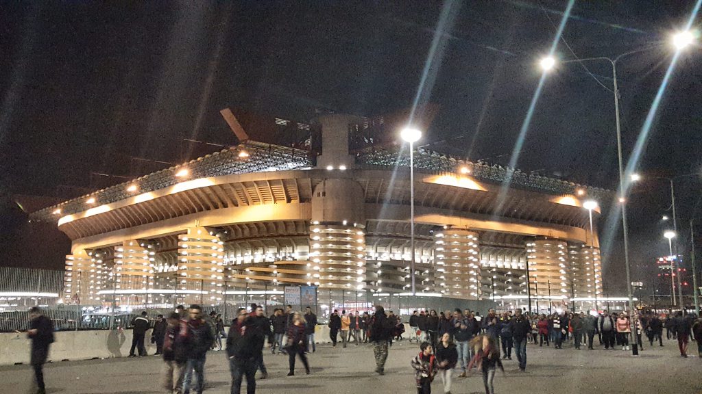 Aus sämtlichen Himmelsrichtungen strömten die NIKSCHUPER ins GIUSEPPE-MEAZZA-STADION, vielen auch bekannt als SAN SIRO, um dem Spiel AC MAILAND gegen SASSUOLO CALCIO beizuwohnen. Vor dem Stadion herrschte bereits eine Art Jahrmarkt-Stimmung mit unzähligen Fress- Bier- und Merchandisingständen. Interessant war hier auch das Bezahlsystem. Zuerst musste man sich anstellen um sein Bier, oder sein feuriges Würstchen, eine Art HOT-DOG mit verschiedenen Belagsmöglichkeiten zu bezahlen. Dafür bekam man einen Beleg mit welchem man sich dann in einer zweiten Schlange postierte, um sein gewünschtes Getränk, oder Würstchen zu erhalten.