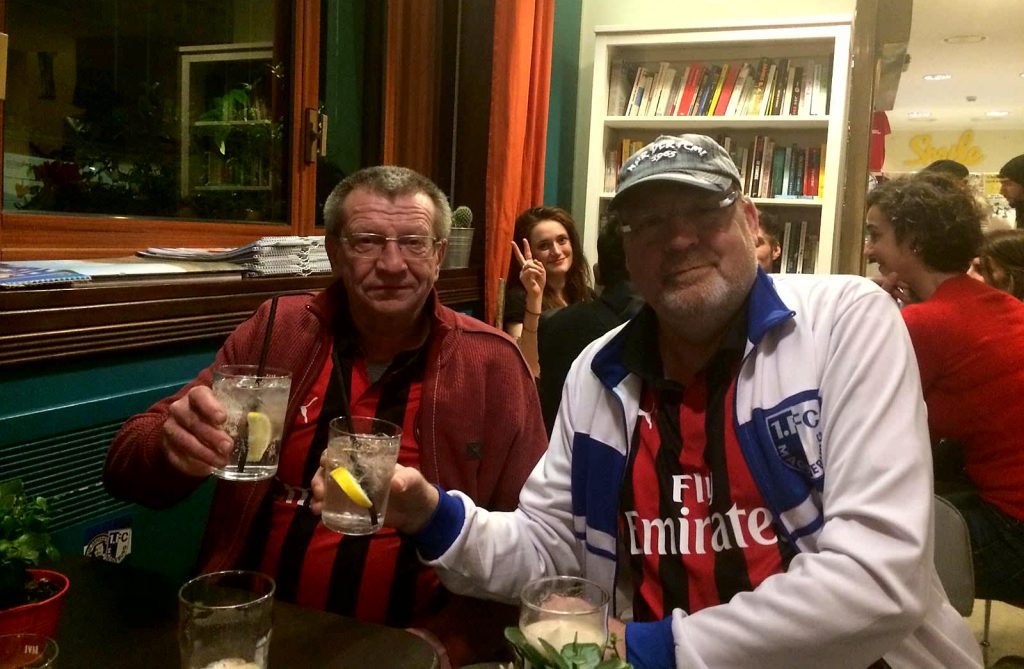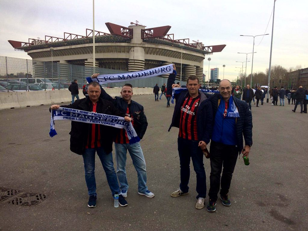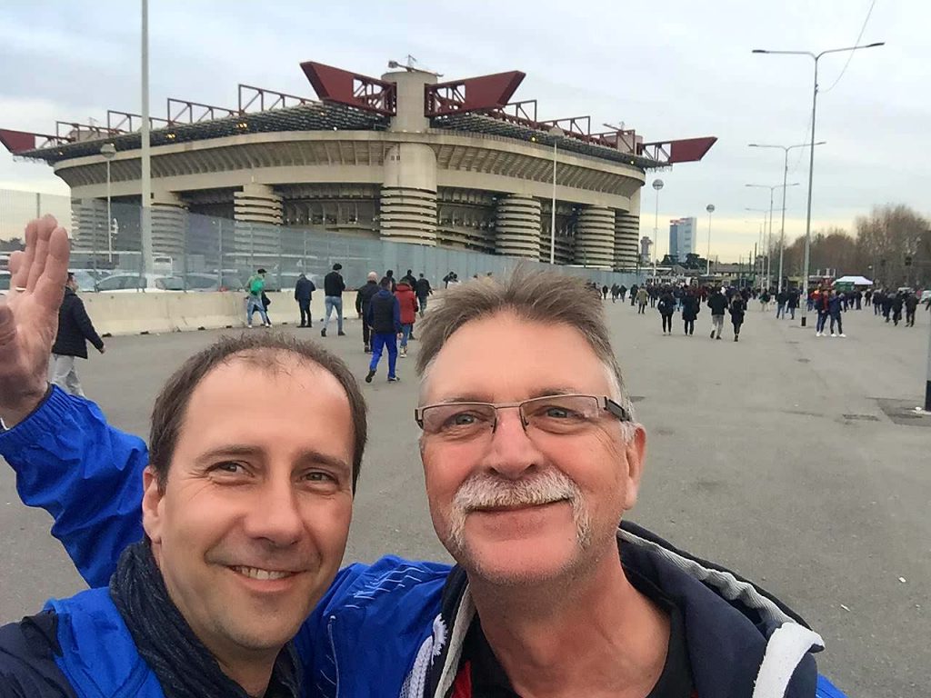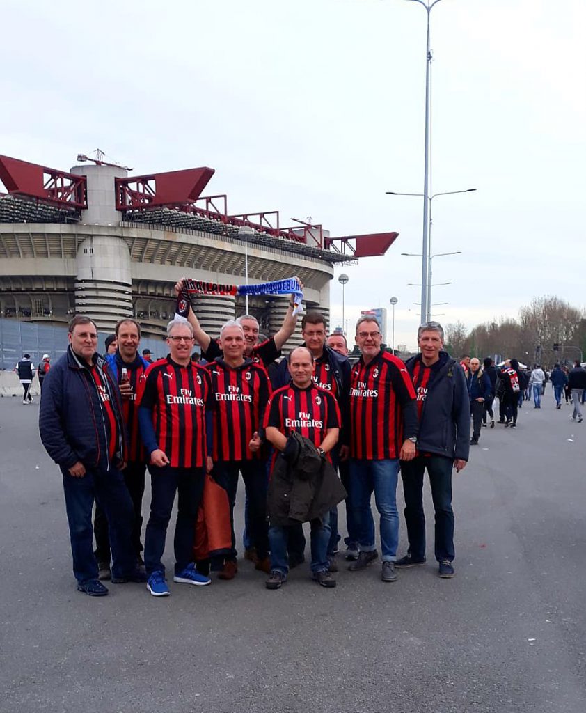 Das Stadion war wirklich sehenswert, auch wenn es nicht mal ansatzweise ausverkauft war. Die Stimmung war für uns verwöhnte FCM-Fans dagegen ehr mau und gleiches galt auch fürs Spiel. Mit einem mageren 1:0 sicherte sich der favorisierte AC MAILAND zwar den Heimsieg, aber die besseren, wenn auch sehr wenigen Chancen hatte eigentlich SASSUOLO CALCIO. Der Stimmung unter uns NIKSCHUPERN konnte dieses schwache Spiel allerdings nichts anhaben, was auch an der guten Versorgung mit ausreichend Bier lag. Zwar kostete der Bringe-Service an den Platz für ein 0,4L Bier knappe 6 Euro, aber immer noch besser als durchs halbe Stadion zu rennen und sich dann wieder zweimal anzustellen, um einen Euro zu sparen.
