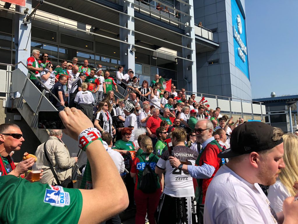 Da ist die Stimmung noch gut. Frisch geölte Kehlen warten nun darauf lautstark unsere GLADSIATOREN zum Sieg zu treiben.