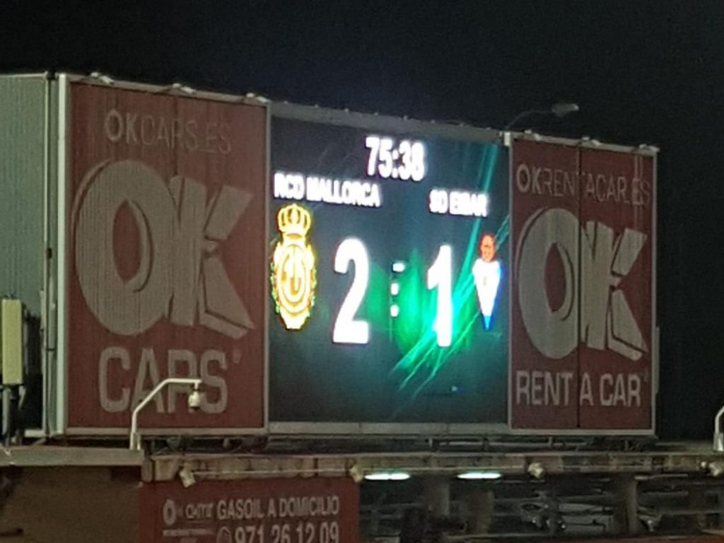 Nachdem wir den EIBAR-ANHANG begrüßt hatten, konzentrierten wir uns auf das Spiel, welches sehr zäh und beschwerlich begann. EIBAR musste sich anfangs erst finden. Es gab Zuordnungsprobleme und eine ganze Reihe Fehlpässe, was auch gleich nach 4 Minuten durch MALLORCA mit dem 0:1 bestraft wurde. Nach 7 Minuten hatten wir noch einmal zu zittern, aber MALLORCA vergab. Der erste gute Angriff von EIBAR fand in Minute 34 statt.