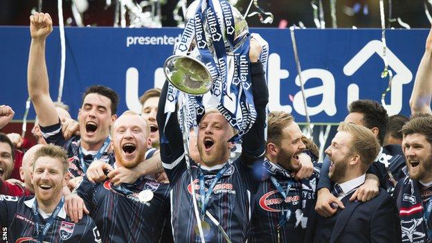 Kriegen die überhaupt eine Mannschaft zusammen, könnte man denken, wenn man blanke Zahlen aus dem Verein im Norden Schottlands serviert bekommt. ROSS COUNTY angesiedelt in DINGWALL, einer Metropole oder sagen wir ein Metropölchen mit 5.491 Einwohnern. Da mutet es schon gespenstisch an, wenn man hört, dass der heimische VICTORIA PARK für 6.541 Zuschauer Platz bietet. Bereits 1929 gegründet konnte der Verein nie so richtig aus den unteren Ligen der SCHOTISCHEN HIGHLANDS herausfinden. Mal ging es hoch mal wieder runter; in der FIRST DIVISION war immer Endstation. Aber 2010 noch in der FIRST DIVISION spielend, ging es plötzlich richtig los. Im Halbfinale des SCHOTTISCHEN FA-CUPS hatte man im HAMPDEN-PARK gegen CELTIC GLASGOW anzutreten. 7.000 STAGGIES-FANS (DINGWALL, hat wie gesagt 5491 Einwohner) waren dabei. Und das muss den spielenden STAGGIES wohl Flügel verliehen haben; denn CELTIC verlor chancenlos (mit Nationalspieler ANDREAS HINKEL, ROBBIE KEANE und MARC ANTOINE FORTUNE, den wir am 9. März 2014 bei MAN CITY in den erfolgreichen Reihen von WIGAN ATHLETIC leise bejubeln durften) mit 0:2. Damit stand ROSS COUNTY erstmals im Finale des FA-CUPS. Am 15. Mai 2010 dann das Finale wieder im HAMPDEN-PARK diesmal mit 17.000 STAGGIES-ANHÄNGERN (Wo haben sie die bloß alle hergeholt?) verlor man gegen DUNDEE UNITED allerdings mit 0:3.