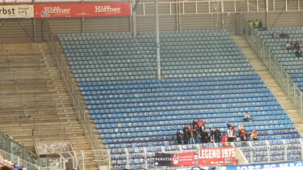 Montagsspiele sind und bleiben Mist, aber Flutlichtspiele sind einfach nur geil. Ein solches stand heute Abend an beim Spiel gegen TÜRKGÜCÜ MÜNCHEN. Schon vor der Partie liefen mir wieder eine Menge NIKSCHUPER über den Weg und natürlich wurde das ein oder andere Bier gekippt und natürlich auch entsprechende Selfies gemacht. Dann ging es aber rein ins pandemiebedingt gut gefüllte HKS und mit Beginn des Spiels gab es von BLOCK U erst einmal eine Schweigeminute. Dann wurde eingeklatscht und sofort war die Stimmung auf dem vollen Höhepunkt. Der CLUB legte auch sofort los und wollte die letzten zwei vermeidbaren Niederlagen in Folge vergessen machen. Nach einigen guten Spielzügen und Halbchancen war es dann ALEXANDER BITTROFF der in der 30. Minute das Leder in die MÜNCHENER Maschen drosch und das HKS zum Überkochen brachte. Der CLUB erspielte sich in Folge noch zwei drei gute Chancen und hätte zur Halbzeit schon höher führen können als 1:0.