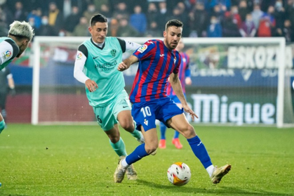 TABELLENFÜHRUNG AUSGEBAUT! Am 26. Spieltag erwartete SD EIBAR seinen Angstgegner HUESCA. Seit dem Aufstieg von Huesca in LALiga war es EIBAR noch nicht gelungen HUESCA zu bezwingen. Das beste Ergebnis waren zwei Unentschieden in der Spielzeit 2020/21. Diesmal am Samstagabend war IPURUA mit 5.100 Fans, davon ca. 300 aus HUESCA, gut gefüllt. Bei Fußballspielen dürfen in SPANIEN die Stadien wegen Covid weiterhin nur zu 75% gefüllt sein. Das Spiel war von Beginn an sehr zäh. HUESCA störte die UNSEREN bereits in der eigenen Spielhälfte und ließ keinen richtigen Spielfluss aufkommen. Ebenso spielt HUESCA sehr hart, was dazu führte, dass der Unparteiische insgesamt 5 fünf gelbe Karten an Spieler der Gästemannschaft zeigen musste. In der ersten Hälfte gab es auf beiden Seiten nur jeweils eine gute Torchance, so dass man mit einem 0:0 in die Kabine ging.