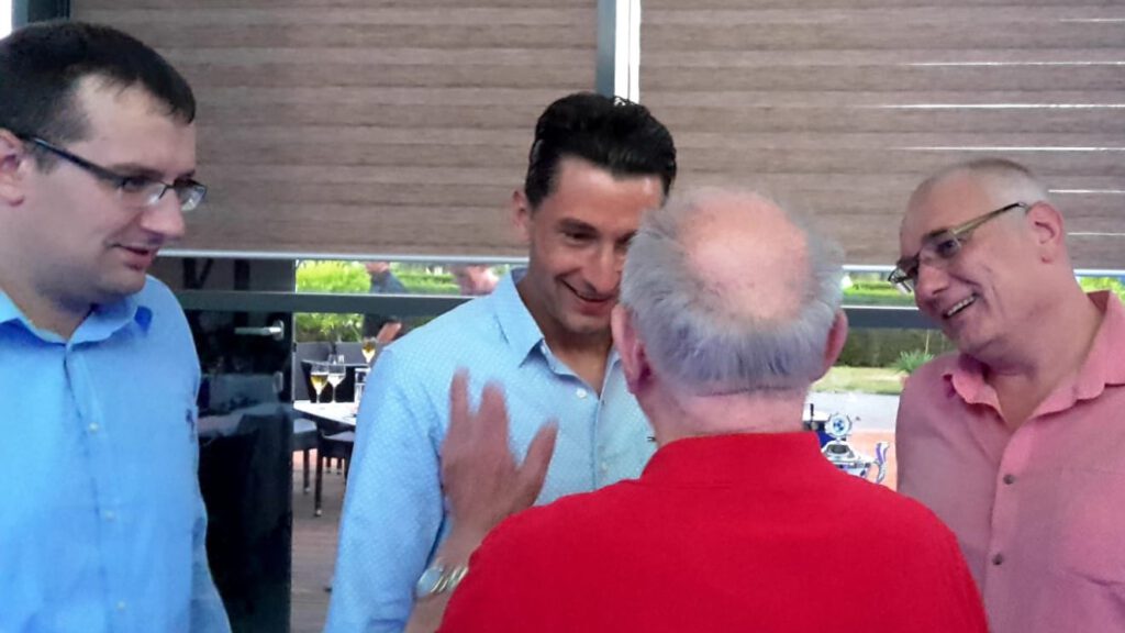 Hier erklärt NORBERT MAY in entspannter Runde MARIUS SOWISLO, wie er damals seine Tore gemacht hat. Respektvoll und dankend nimmt der damalige Kapitän des 1. FC MAGDEBURG am 16. August 2016 anlässlich des 20. NIKSCHUP-GEBURTSTAGES die Ratschläge des ehemaligen CLUBSPIELERS an.