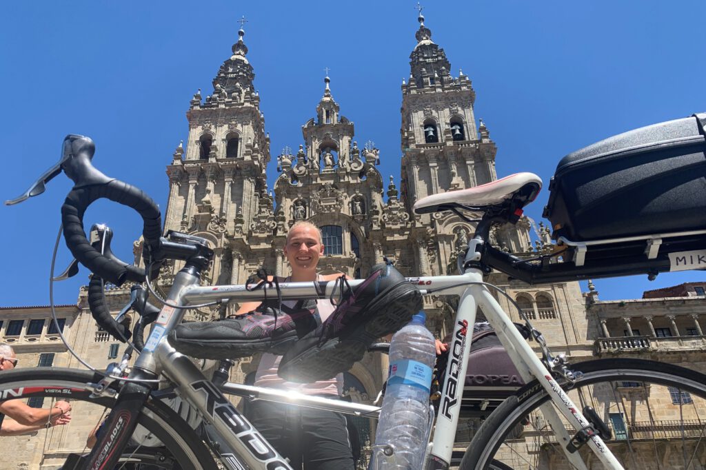 Am gleichen Tag, denn vor 3:00 Uhr waren wir ja nicht im Bett, ging es gegen 13:00 Uhr mit dem Rad los. SANTIAGO war das Ziel, keine 700 km und nur knapp 8.000 Höhenmeter von EIBAR entfernt. AMY zeigte mir an den Bergen, glaubt mir davon gibt es dort ganz viele, wo der Hammer hängt. Völlig erschöpft erreichten wir oder sagen wir mal lieber ich 5 Tage später SANTIAGO und müssen auch noch zugeben, den Bus für eine Teilstrecke genutzt zu haben. Egal.