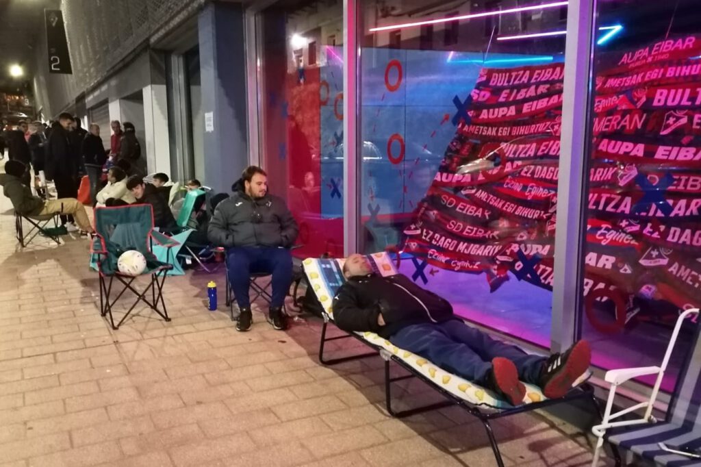 Ich hatte schon die Sprechstunde für den kommenden Montag abgesagt; denn eins stand fest, nach dieser historischen Gala in IPURUA wollte ich zur Aufstiegsfeier in ALCORCON unbedingt dabei sein. Schwierigkeiten bereitete noch das Ticket, denn von ALCORCON wurden offiziell nur 300 Karten für EIBAR-FANS zur Verfügung gestellt. Die HARDCORE-ARMEROS zogen also Dienstag Abend gegen 21:00 Uhr mit Campingliegen nach IPURUA, um am Mittwoch um 9:00 Uhr, wenn der Kartenschalter öffnet, jeweils zwei der begehrten Tickets zu ergattern. Und bei einer Kartennachfrage von über 1000 tritt das Unglaubliche ein, dass mein Freund EL PRESIDENTE für mich eine Karte reservierte. Danke JOSEBA!!!