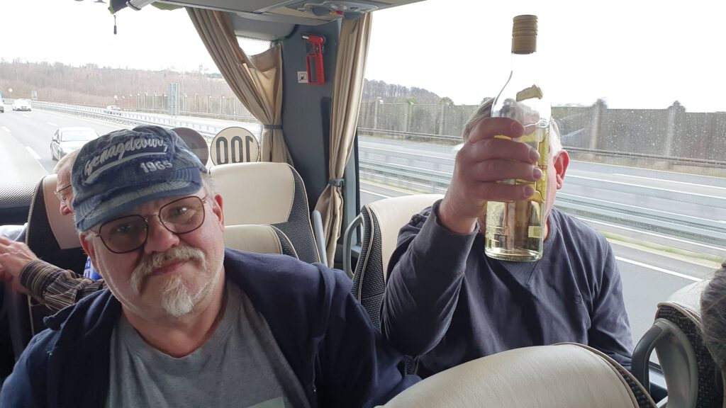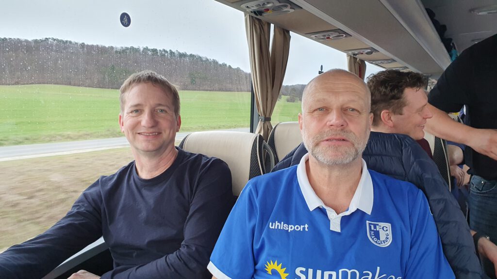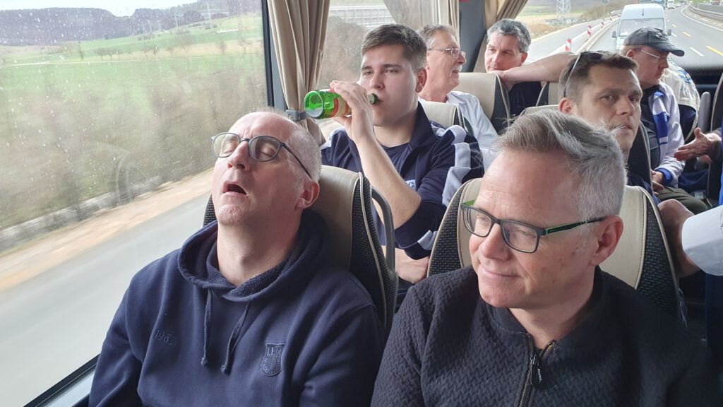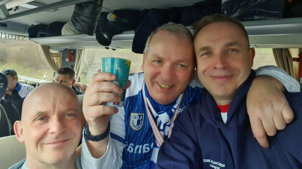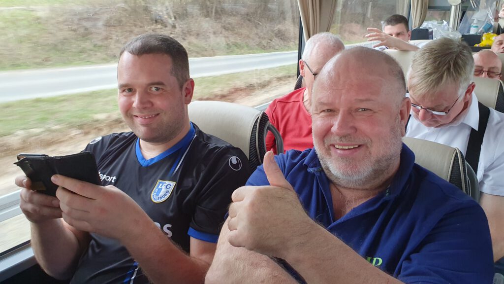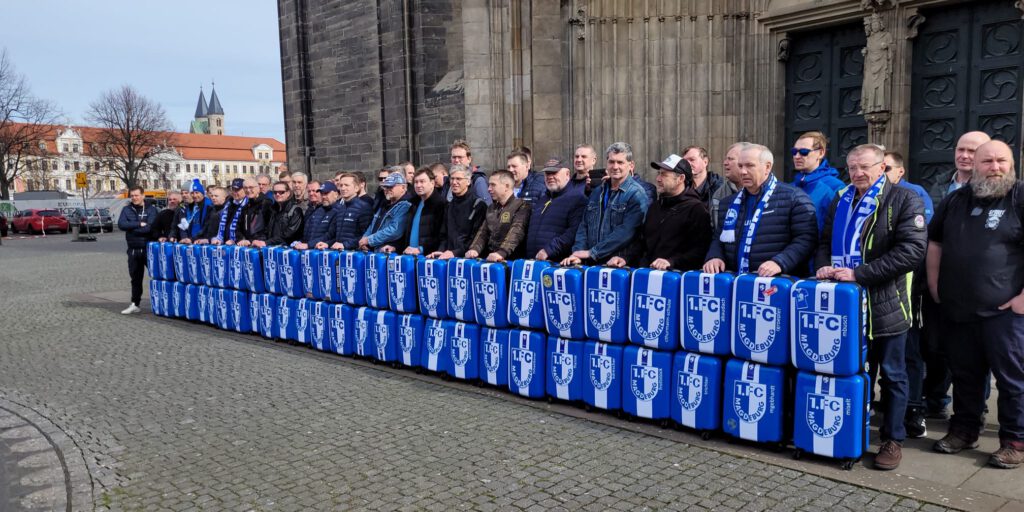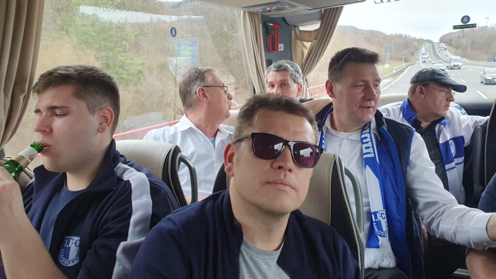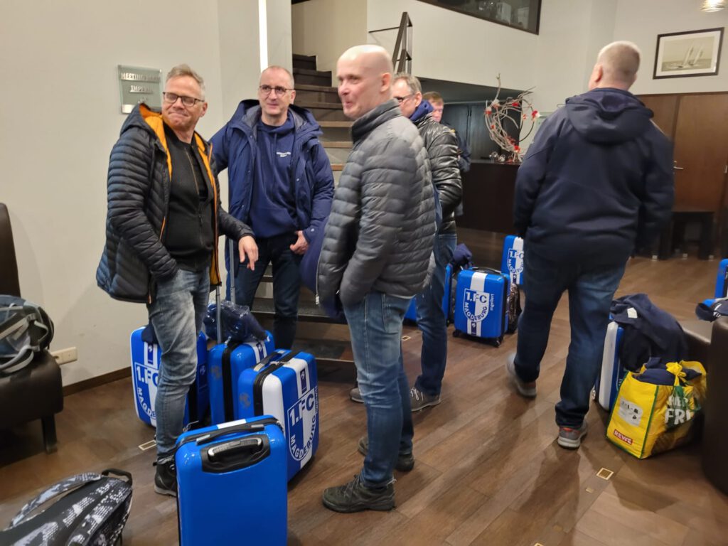 ENDLICH war es wieder soweit, der NIKSCHUP ging auf Tour und dieses Mal fuhren wir mit dem Bus nach BELGIEN. Pünktlich strömten am 17.03.2023 aus allen Himmelsrichtungen mit deutlich sichtbaren blau-weißen Koffern unzählige NIKSCHUPER zum Domplatz. Dort gab es dann erst einmal die Scheck-Übergabe an die beiden netten Damen der Kinderonkologie der UNIVERSITÄTSKLINIK MAGDEBURG. Stolze 5.999 Euro plus einem symbolischen Cent, den MFLACH extra noch hat in seinem Schatzkeller auftreiben können, nachdem BKOCH ihn dort versteckt hatte, konnte der NIKSCHUP durch seine Spendenaktion im Jahr 2022 sammeln und dieses Geld erneut einem sehr guten Zweck zukommen lassen. Natürlich gab es dann auch gleich noch das obligatorische Kofferfoto vorm DOM, nebst NIKSCHUP-typischem Einklatschen und einem lautstarken „FUSSBALLCLUB MAGDEBURG“, bevor sich alle in den schon wartenden Bus begaben. Ich schätze mal wir waren noch nicht vom Domplatz runter, da hatten die ersten Sportfreunde bereits das zweite Bier oder die zweite Mischung an den Lippen.