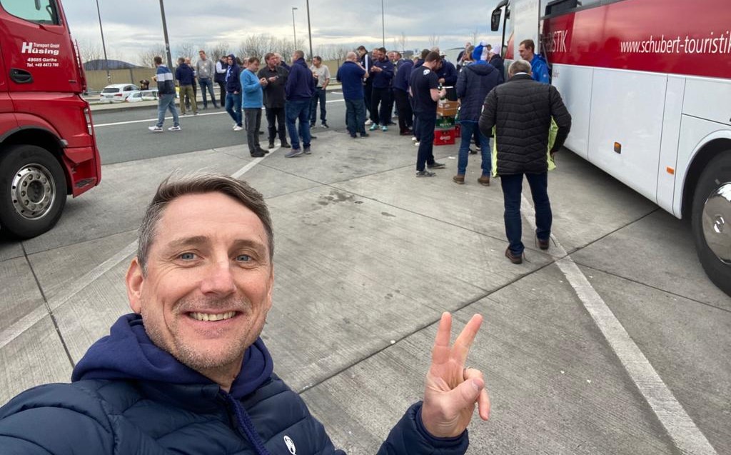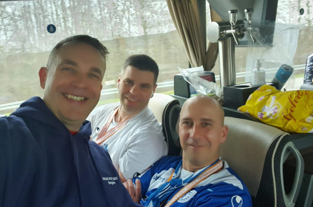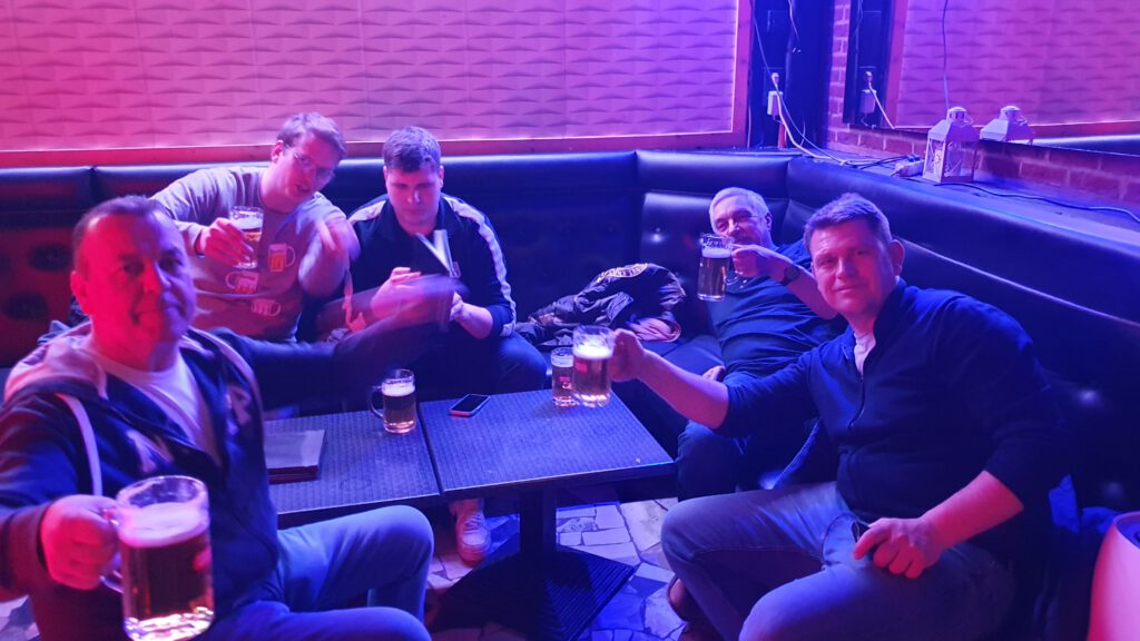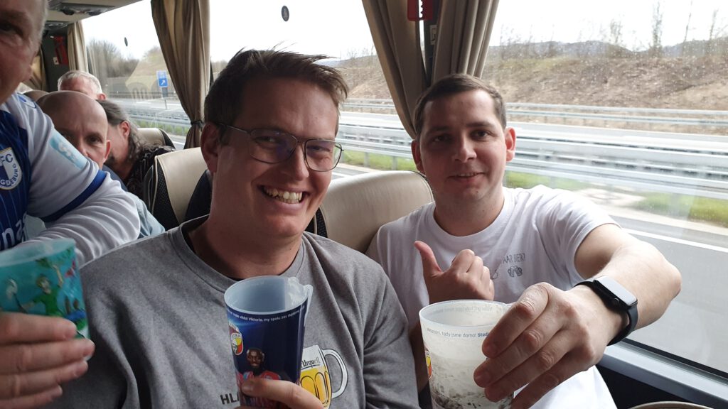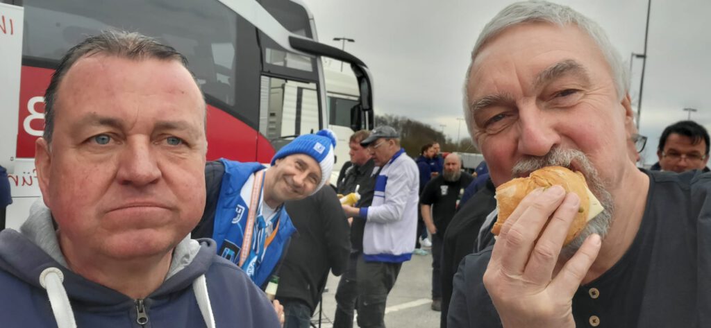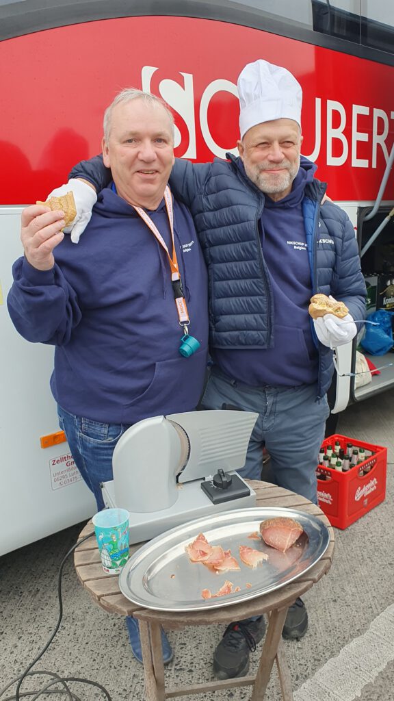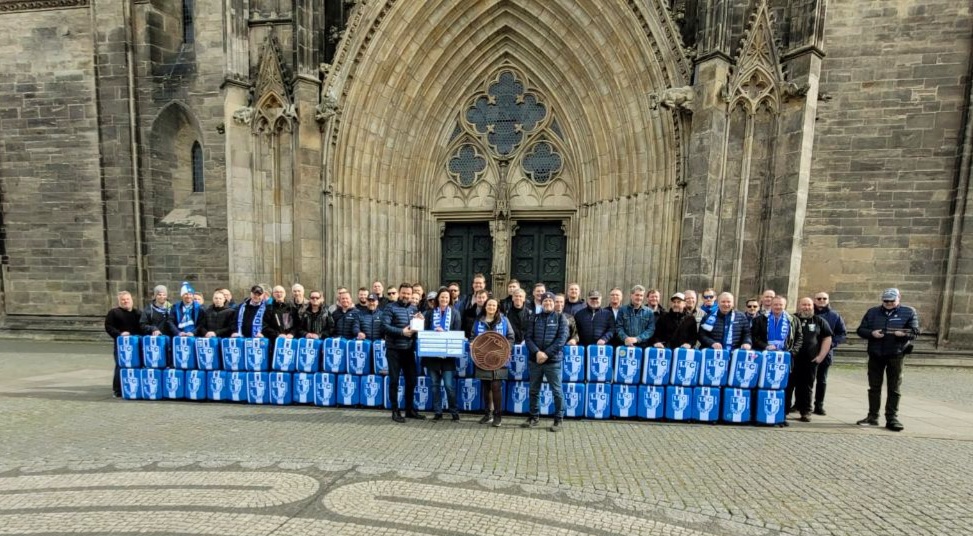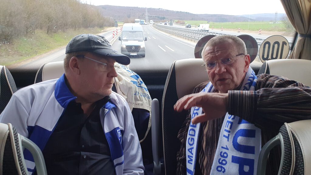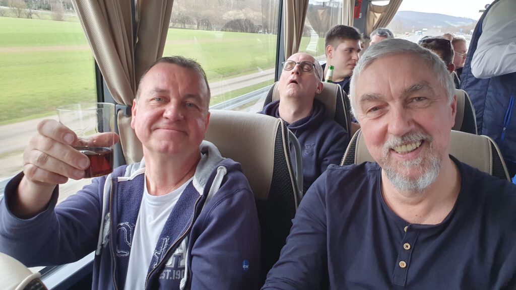 ENDLICH war es wieder soweit, der NIKSCHUP ging auf Tour und dieses Mal fuhren wir mit dem Bus nach BELGIEN. Pünktlich strömten am 17.03.2023 aus allen Himmelsrichtungen mit deutlich sichtbaren blau-weißen Koffern unzählige NIKSCHUPER zum Domplatz. Dort gab es dann erst einmal die Scheck-Übergabe an die beiden netten Damen der Kinderonkologie der UNIVERSITÄTSKLINIK MAGDEBURG. Stolze 5.999 Euro plus einem symbolischen Cent, den MFLACH extra noch hat in seinem Schatzkeller auftreiben können, nachdem BKOCH ihn dort versteckt hatte, konnte der NIKSCHUP durch seine Spendenaktion im Jahr 2022 sammeln und dieses Geld erneut einem sehr guten Zweck zukommen lassen. Natürlich gab es dann auch gleich noch das obligatorische Kofferfoto vorm DOM, nebst NIKSCHUP-typischem Einklatschen und einem lautstarken „FUSSBALLCLUB MAGDEBURG“, bevor sich alle in den schon wartenden Bus begaben. Ich schätze mal wir waren noch nicht vom Domplatz runter, da hatten die ersten Sportfreunde bereits das zweite Bier oder die zweite Mischung an den Lippen.