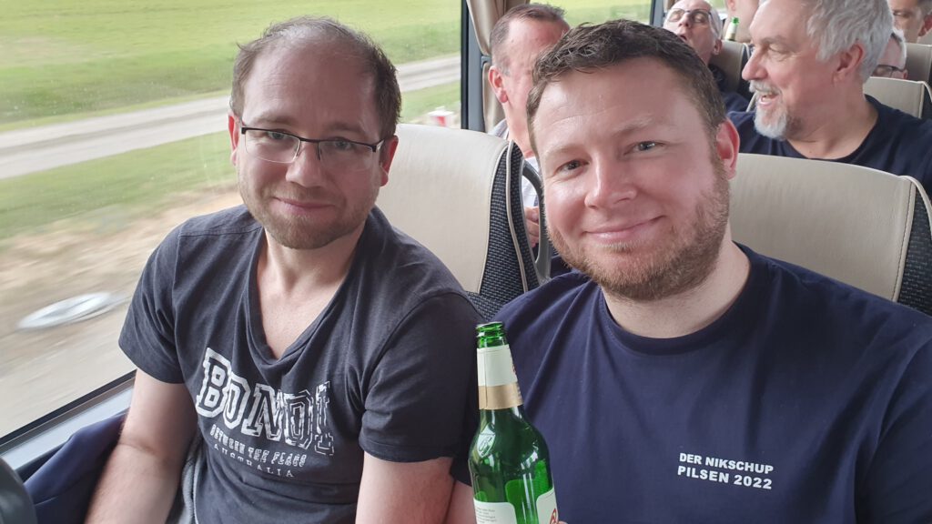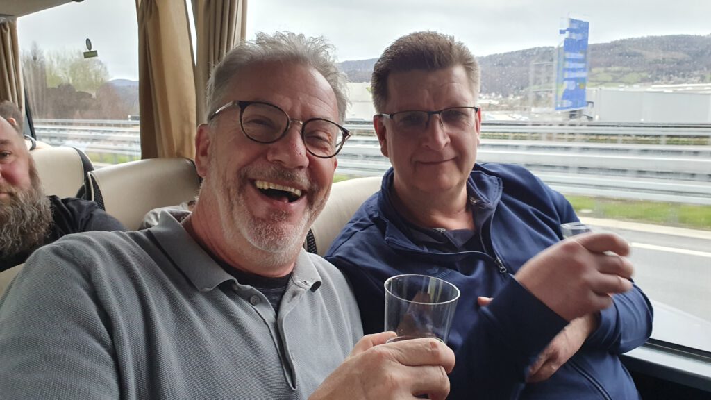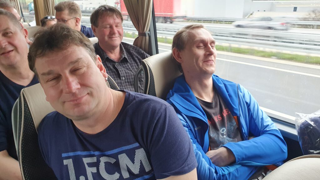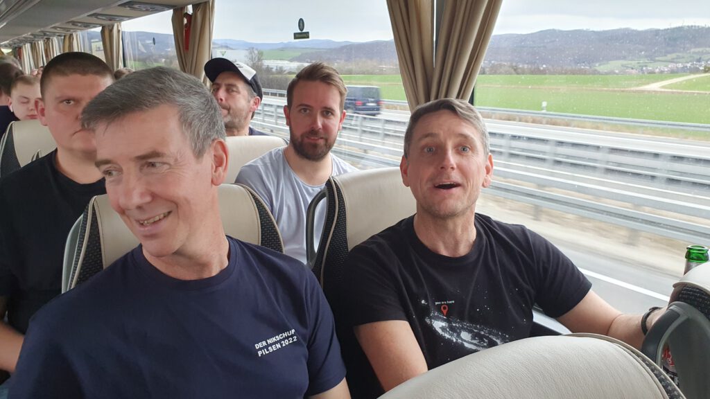Keine Ahnung wer hier für die bildlichen Formate im Bus zuständig war, CARSTEN vermutlich nicht, da er sonst im Vordergrund zu sehen wäre, aber Beschwerden nehmen wir trotzdem entgegen, falls sich der ein oder andere nicht so vorteilhaft abgelichtet sieht. Außer die Beschwerde kommt von BERND, dann natürlich nicht. Bezüglich irgendwelcher Bedenken zum Thema Datenschutz und Persönlichkeitsrechte an Bild & Ton sollte jedem NIKSCHUPER bewusst sein, dass er diese mit Beitritt unwiderruflich an uns abgetreten hat. Also gibt es auch hier leider kein Vetorecht, aber wenn ich mir die Fotos so ansehe, dann seid ihr doch alle ganz hübsche Jungs, die sich überall und jederzeit sehen lassen können.