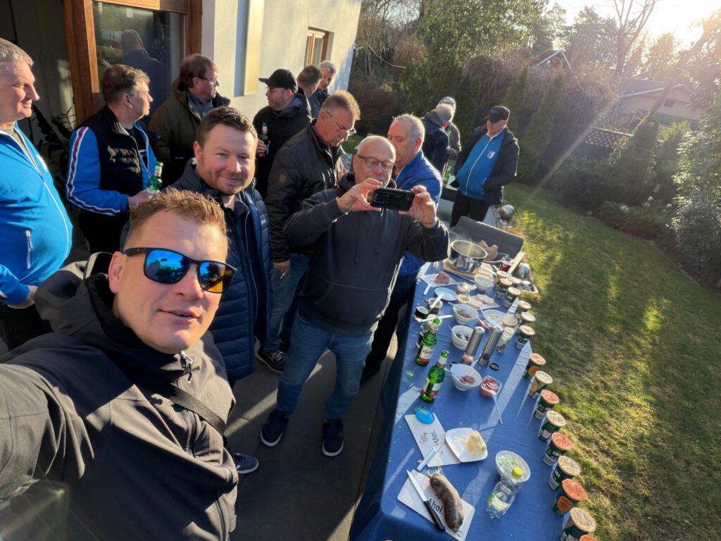 Alle 10 Jahre kommt es bei NIKSCHUPS dann doch einmal vor, dass man nicht zusammen sondern getrennt die weite Fußballwelt bereist. In diesem Jahr zum 30-jährigen Jubiläum war es wieder soweit. DIE NIKSCHUPS wollten nach BUDAPEST und die NIKSCHUPS wollten nach SÜDAMERIKA. Ein jeder NIKSCHUP konnte sich seine Reise aussuchen. Traditionell startet der BUDAPEST-NIKSCHUP klassisch im März. Und diese Gruppe hatte es nicht nur faustdick hinter den Ohren sondern deren Durst war auch unerschöpflich. Um zumindest eine vernünftige Mahlzeit auf dieser Tour zu garantieren, gab es ein Abschiedsfest im Gneisenauring mit hauptsächlich fester Nahrung. Der Beginn war mutig auf 6:30 Uhr veranschlagt worden. Immerhin 16 der 28 BUDAPEST-NIKSCHUPS wollten sich dieses Frühstück dann auch nicht entgehen lassen.