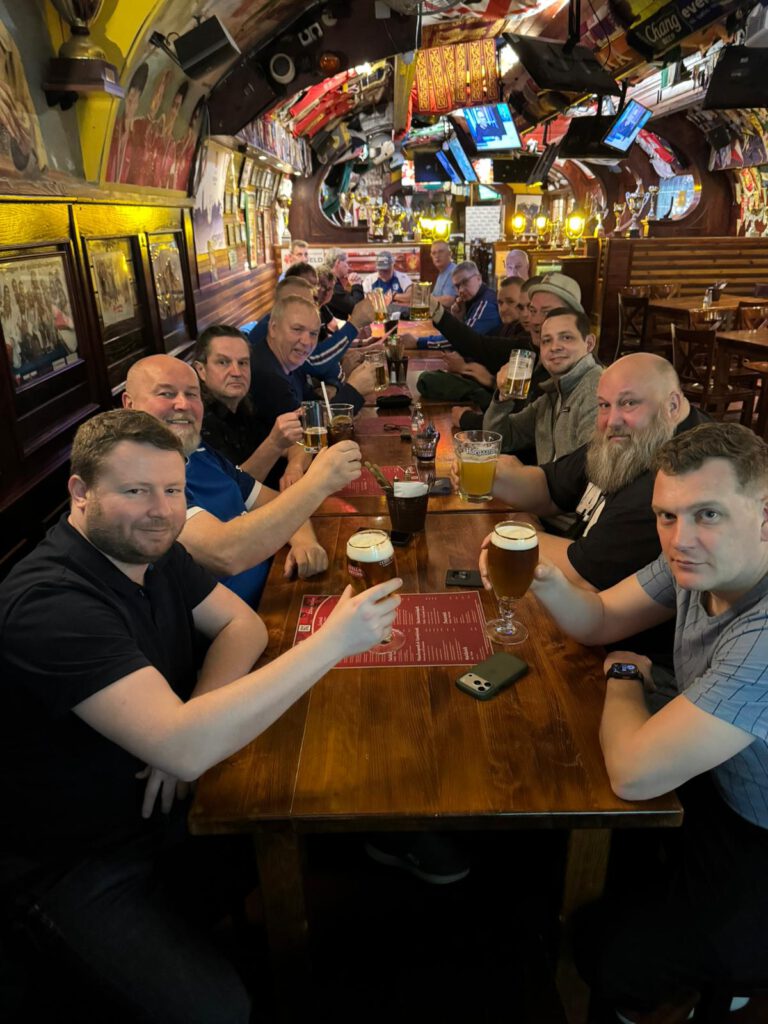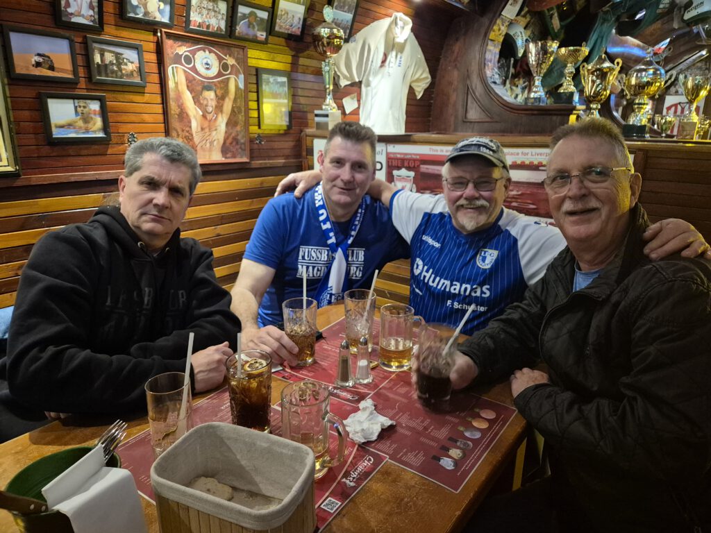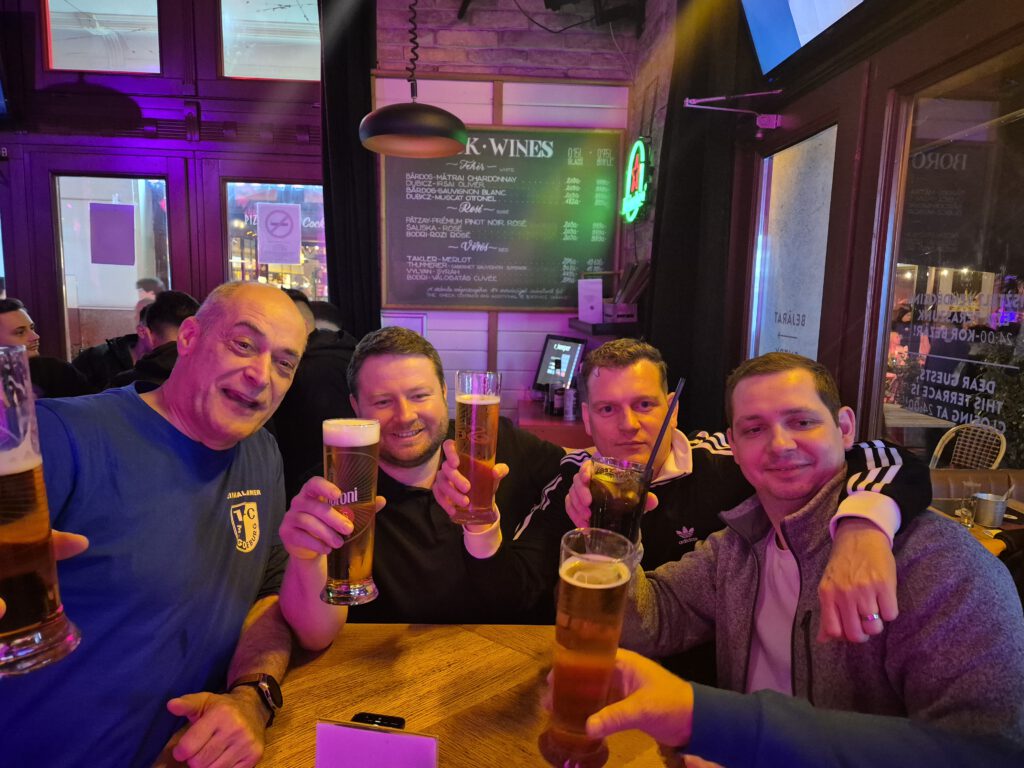 Ach Leute, was soll man zu diesem 1:1 gegen DARMSTADT noch schreiben. An der Unterstützung im HKS und der CHAMPS SPORT BAR in BUDAPEST lag es definitiv nicht, denn die Jungs brannten alle, wie man auf den folgenden Bildern deutlich sehen kann. Der CLUB hat sicherlich nicht schlecht gespielt, aber unter dem Strich ist ein Punkt, noch dazu zu Hause, in unserer Situation einfach zu wenig. Dieses eher nüchterne Ergebnis bremste die Stimmung in unserer Reisegruppe auch nur kurzfristig, denn davon lassen sich echte NIKSCHUPER natürlich ihre Laune keineswegs verderben.