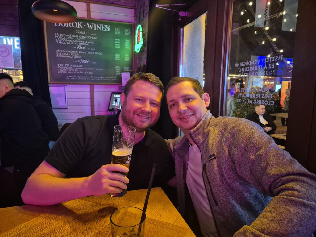Nach etwas mehr als einer Stunde Flugzeit kamen wir auch schon in BUDAPEST an und ich hatte auch zwei Stunden später immer noch leichten Tinnitus von NEUPIS- Lebensgeschichte, die er mir während des Fluges erzählt hat. Mit dem Flughafenbus 100E ging es dann ins zentral gelegene Hotel K+K OPERA, welches vom ORGA- Team um TOBI KARDINAL und BABSI SCHUSTER perfekt ausgewählt war. Auch der Check-In verlief problemlos und schnell, so das man noch ein bisschen durch die Stadt bummeln, oder aber an der in Rekordschnelle eingerichteten Hotel-Zimmer-Bar der CUBA-LIBRE-Gang einen ersten Drink nehmen konnte, bevor es dann zum Freitagabendspiel der GRÖSSTEN DER WELT ging.