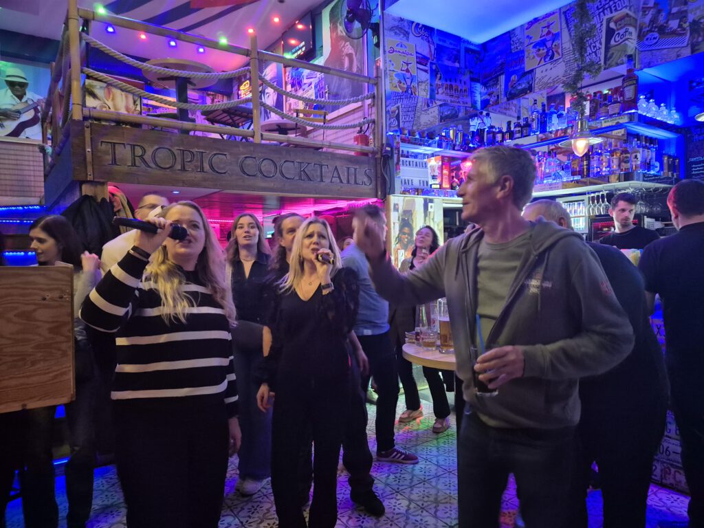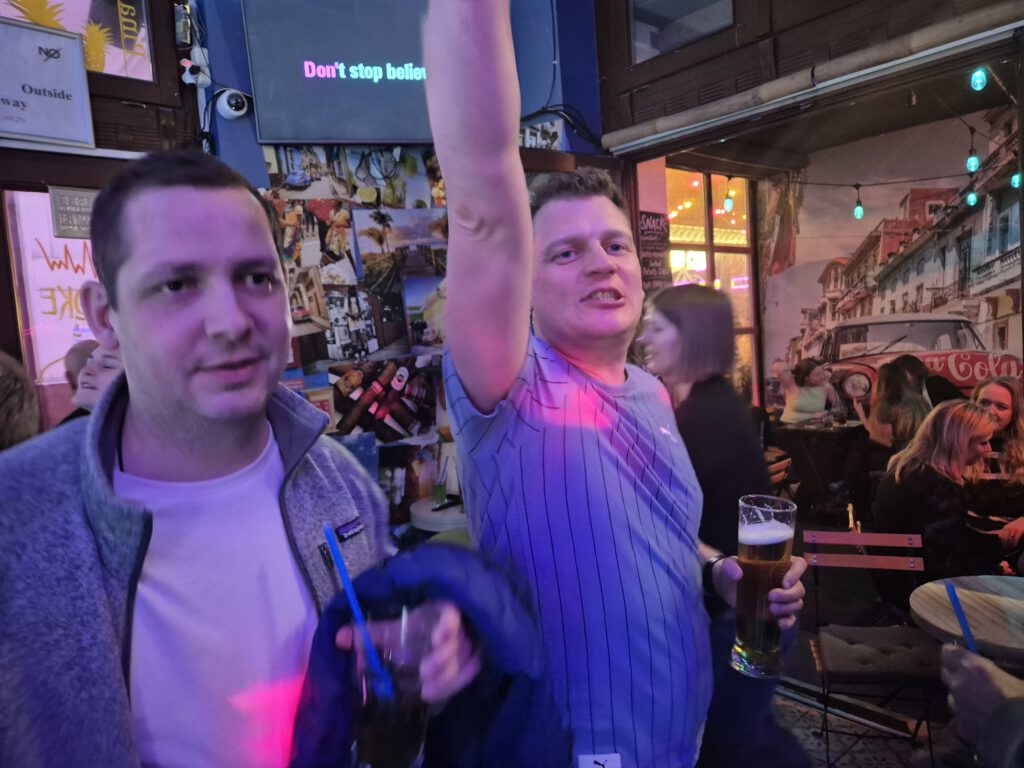 Während die älteren Herrschaften sich dann langsam zurück ins Hotel begaben um ihren wohlverdienten Schönheitsschlaf zu nehmen, machte sich eine kleine Gruppe Unverdrossene auf das Nachtleben von BUDAPEST mal so richtig auf den Kopf zu stellen. Dafür boten sich diverse Kneipen und Karaoke-Bars geradezu an und natürlich ließen es sich die NIKSCHUPER nicht nehmen ihren Goldkehlen nicht nur ausreichend Flüssigkeit zukommen, sondern diese auch mal richtig laut klingen zu lassen. Aus Rücksicht auf so manche empfindliche Ohren verzichten wir allerdings darauf unser filmisches und akustisches Video-Material hier hochzuladen. Wir lassen da lieber mal nur die Bilder sprechen.